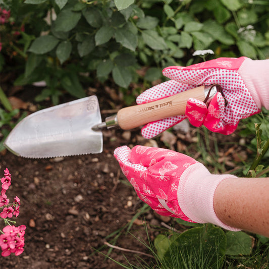 Kent & Stowe Pink Flutterbugs Print Cotton Gloves - Medium