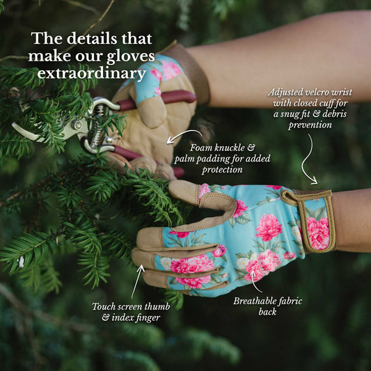 Kent & Stowe Aqua Peony Premium Comfort Gloves - Ladies Small