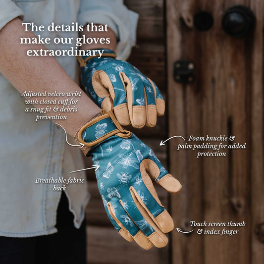 Kent & Stowe Teal Flutterbugs Comfort Gloves - Small
