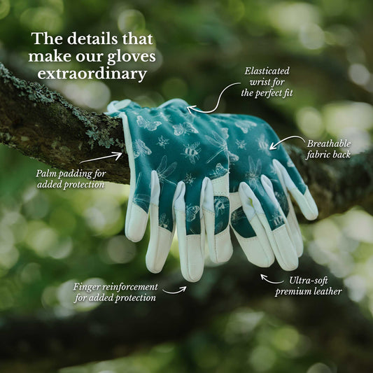 Kent & Stowe Teal Flutterbugs Premium Leather Gloves - Ladies Medium