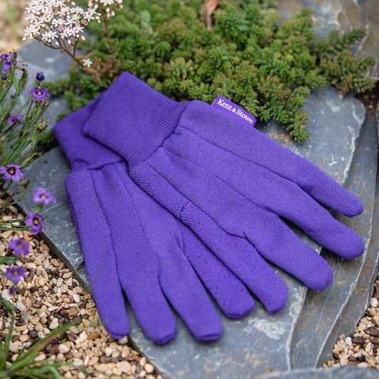Kent & Stowe Purple Jersey Cotton Grip Gloves - Ladies Medium