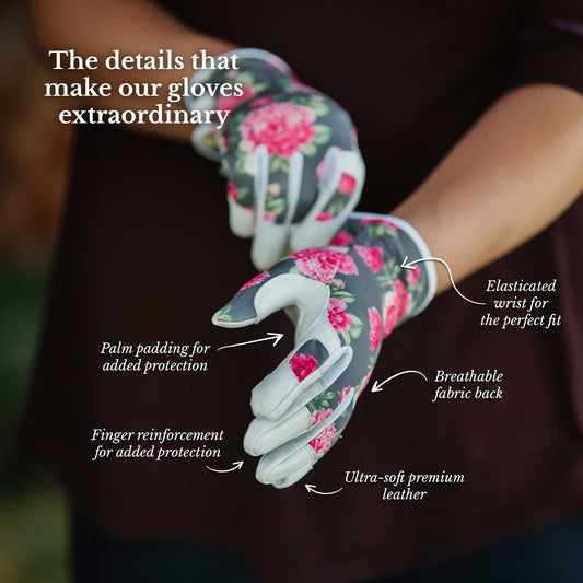 Kent & Stowe Grey Peony Premium Leather Gloves - Ladies Small