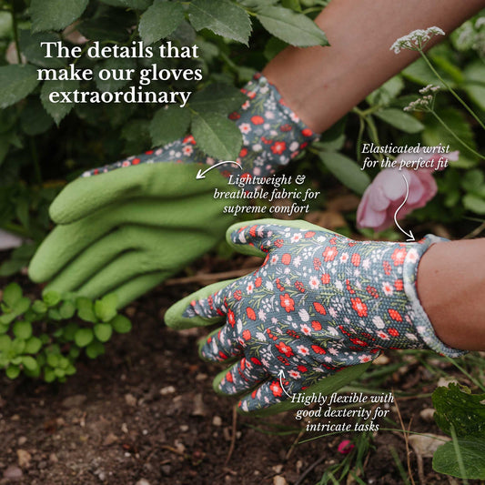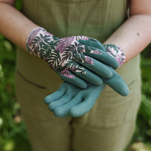 Kent & Stowe Green Flutterbugs Print Cotton Gloves - Medium